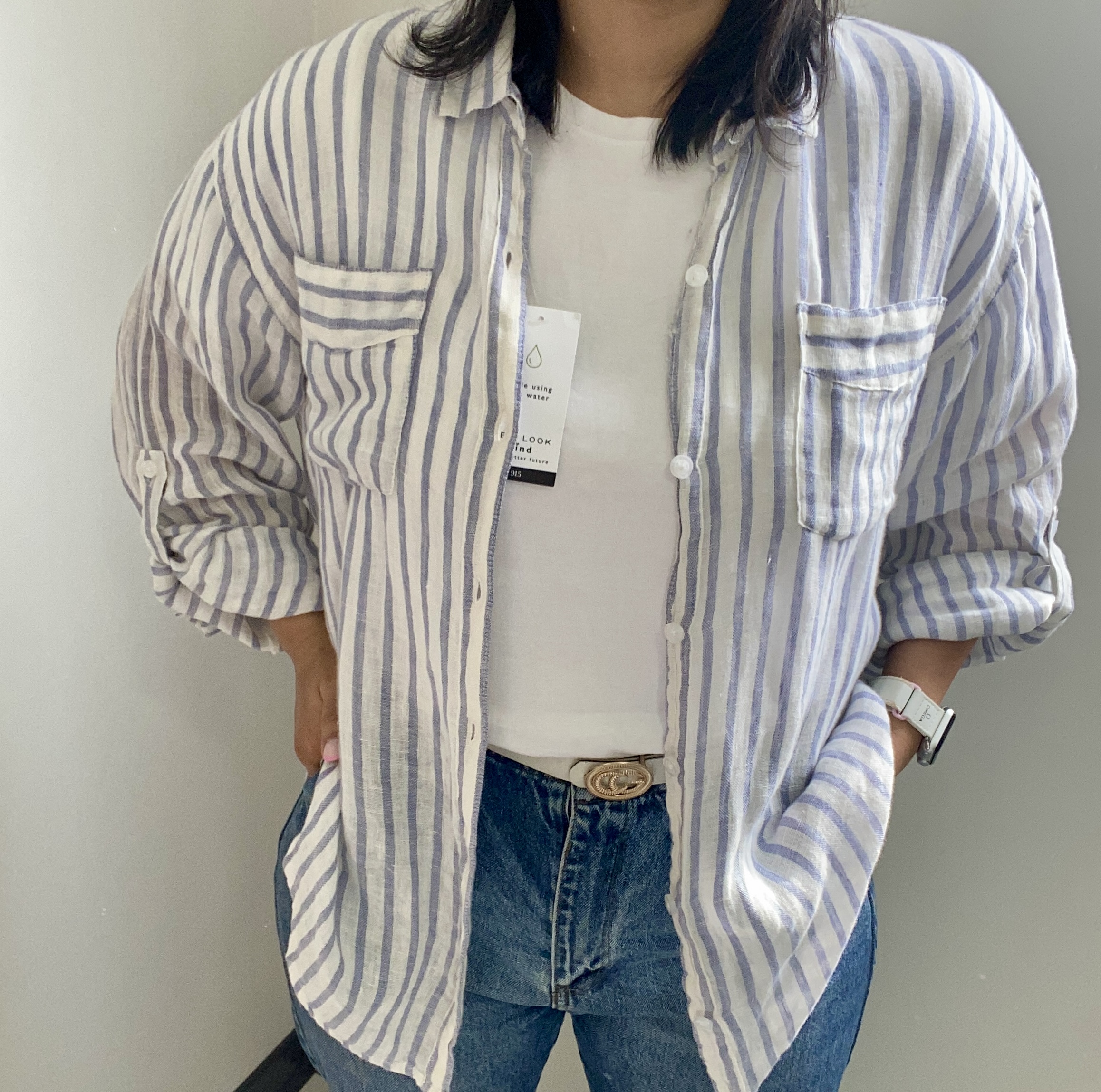 شومیز زنانه برند new Look جنس لینن مدل راه راهناموجود