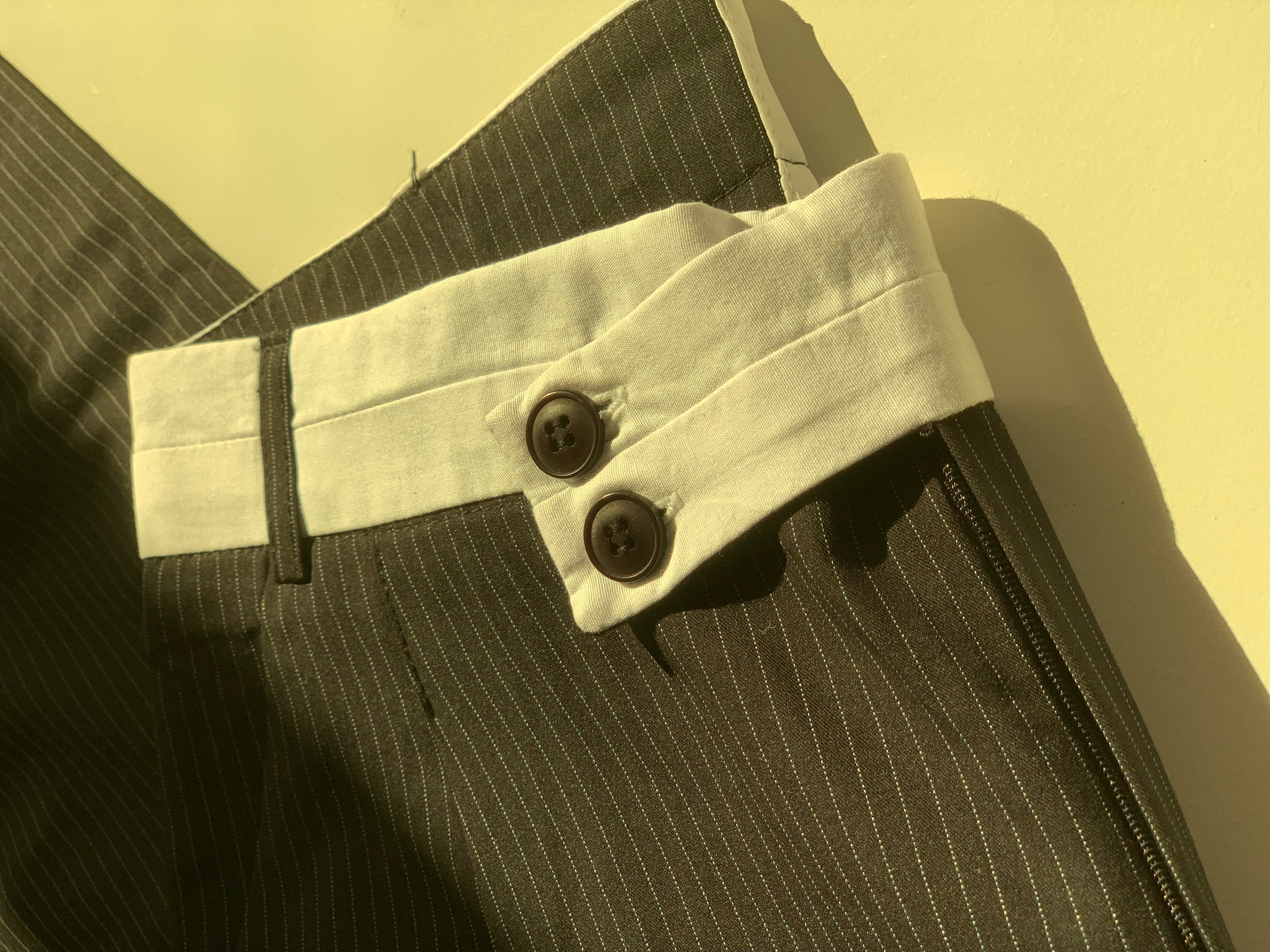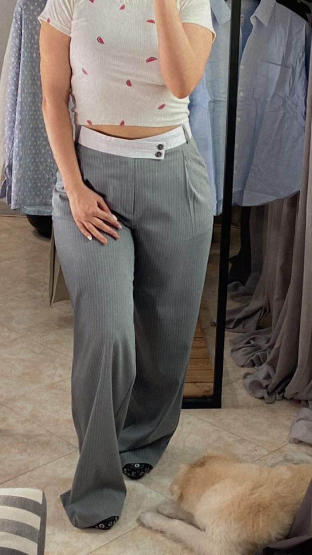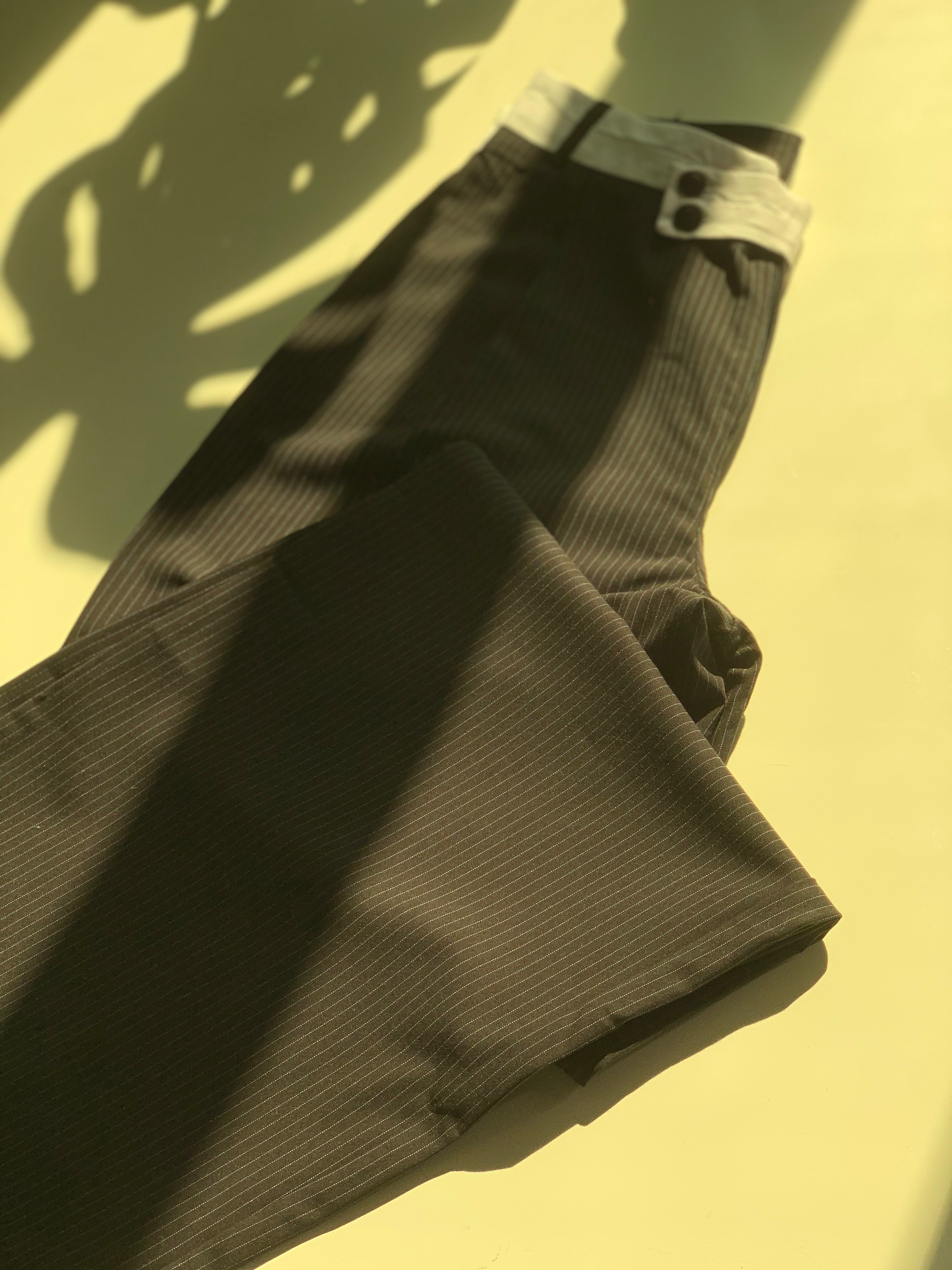 شلوار دیپلمات پارچه راه راه کمر سفید